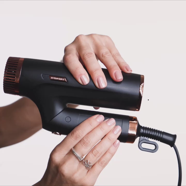 This foldable hair dryer combines convenience and performance with a compact, space-saving design. It offers 3 speed settings and 2 heat levels for customizable styling, plus a cool shot button to lock in your look. The included concentrator nozzle ensures precise airflow for smooth and defined styles. Featuring 2 advanced air wrap curling wands, this dryer minimizes heat damage by using gentle airflow to wrap the hair around the barrel, creating smooth, shiny curls with less frizz. The wands adapt to your hair’s texture, delivering flawless curls every time—whether you want soft waves or bouncy curls. This all-in-one tool set combines drying, styling, and curling in one compact, foldable design for ultimate convenience.